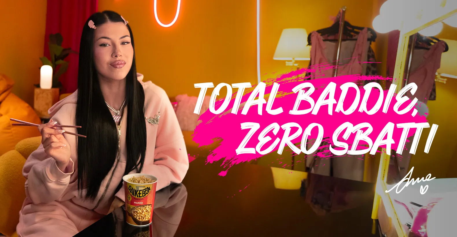 Hey tu. Sì, proprio tu che vivi in modalità zero sbatti e trovi sempre la via più easy. È nata la partnership tra Anna e Saikebon: welcome to Total Baddie, zero sbatti. Un universo dove lo spirito easy e gustoso incontra l’attitudine libera e baddie di Anna, che l’ha resa la voce icona della GEN Z.